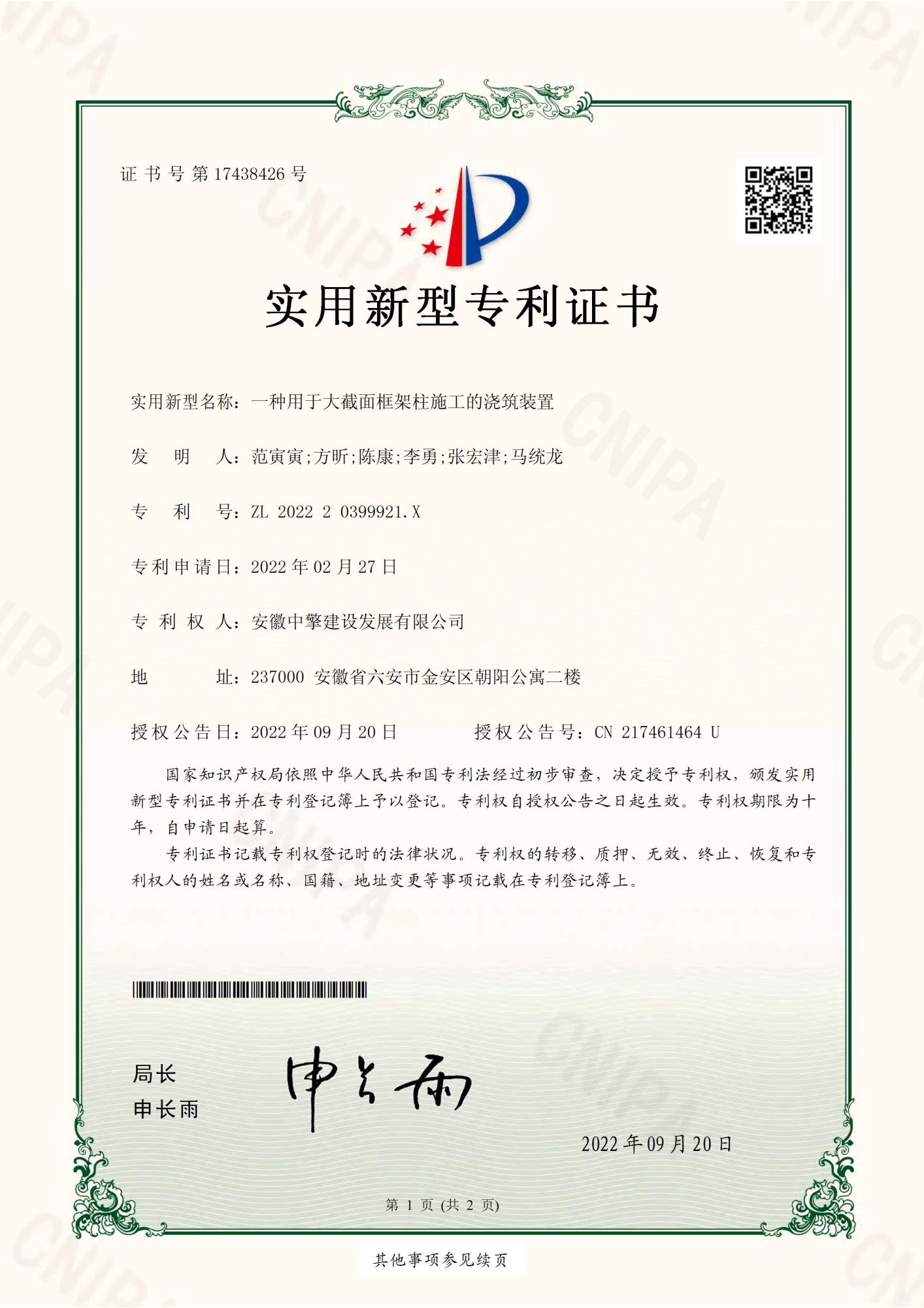一種用于大截面框架柱施工的澆筑裝.