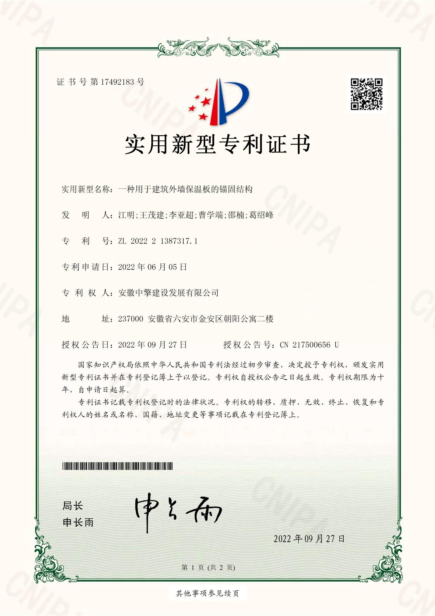 一種用于建筑外墻保溫板的錨固結(jié)構(gòu)
