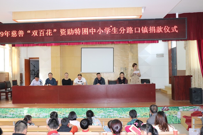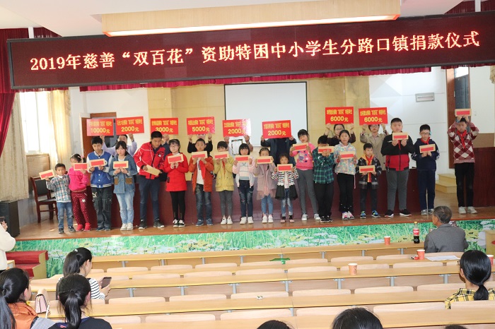 2019年4月16日下午,中擎集團人事部負責人趙靜同志代表集團子公司六安金裕置業(yè)有限公司前往分路口鎮(zhèn),參加裕安慈善協(xié)會組織的2019“雙百花”資助捐款活動,并向該鎮(zhèn)貧困學生捐款六千元。